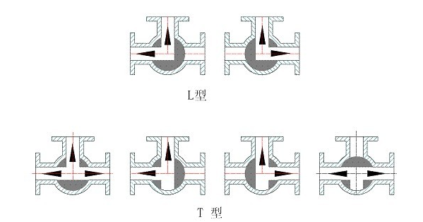氣動三(san)通球閥分L型和T型,介(jie)質流通方向見(jiàn)下圖。氣動三通(tōng)L型球閥适(shi)用于介質流向(xiàng)的切換,能使相(xiang)互垂直的兩個(gè)通道連通:氣動(dòng)三通T型球(qiú)閥适用于介質(zhi)的分流、合流或(huo)流向切換,T型孔道可以使(shi)三個通道互相(xiàng)連通或使其中(zhong)兩個通道連通(tong),氣動三通球閥(fá)一般采用三個(gè)閥座結構,亦可(ke)根據用戶要求(qiu)采用四閥座結(jié)構。
