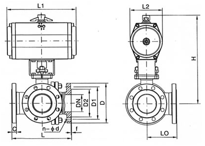 七、氣動(dong)襯氟三通球閥(fa)外形圖