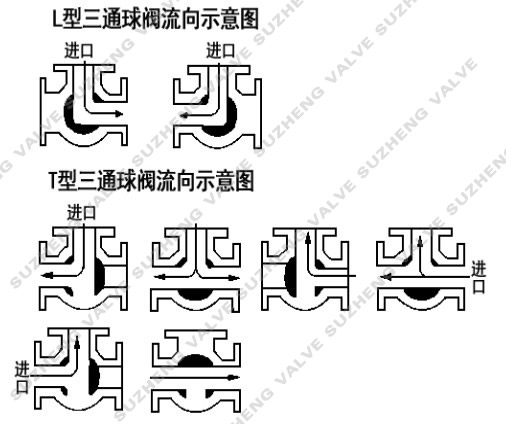 電動三通球閥分(fèn)L型和T型,介質流通(tong)方向見下圖。 L型🐅電(diàn)動三通球閥适用(yong)于介質流向的切(qiē)換,能使相互垂直(zhi)📞的兩個通👨❤️👨道連通(tōng): T型電動三通球閥(fá)适用于介質的分(fèn)流、合流或流向切(qie)換,T型孔道可以使(shǐ)三個通♍道互相連(lian)通或使其中兩個(ge)通道連通,電動三(san)通球😄閥一般采用(yòng)三個閥座結構,亦(yì)可根據用戶要求(qiu)采用四閥座結構(gòu)。