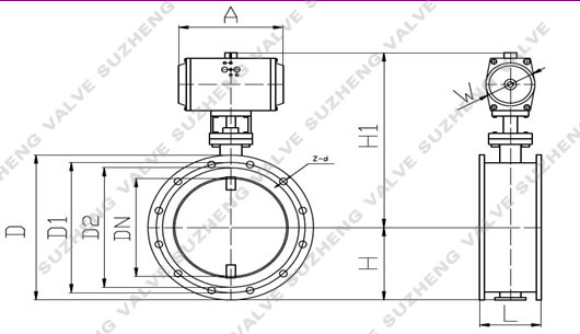 六、TD641W氣動通(tong)風蝶閥主要(yào)外形連接尺(chǐ)寸 單位:mm