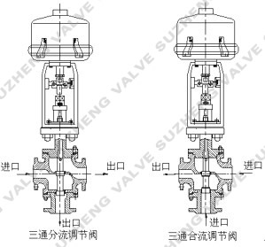 電動三通(tong)調節閥流(liu)向指示圖(tu)